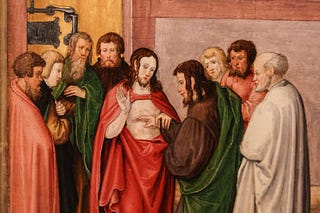 On Low Sunday, the Easter Octave, we hear about the institution of the sacrament of penance, and the resolution of St Thomas' doubts.