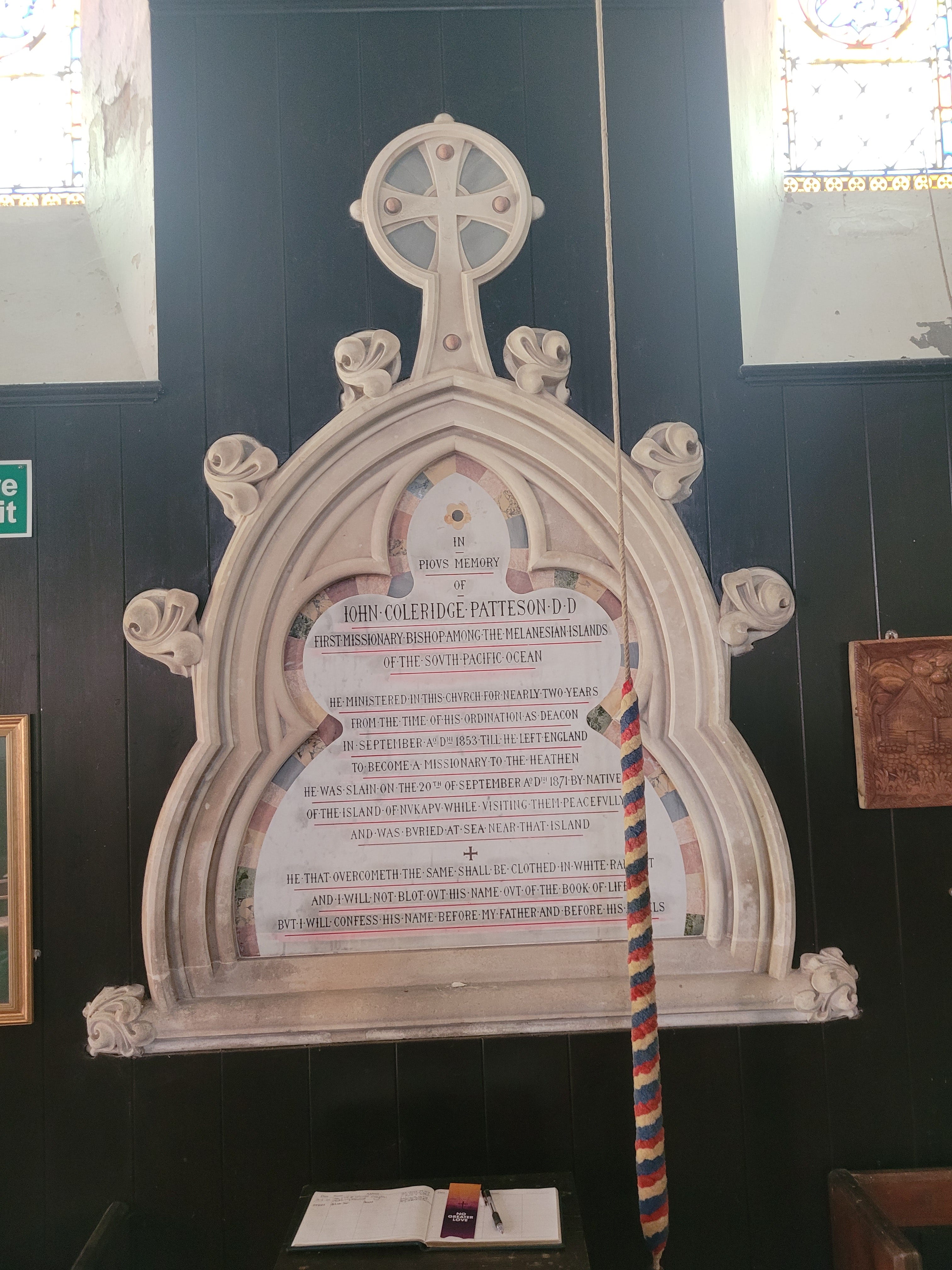 The church contained more than one reference to John Coleridge Patteson (no relation to Bishop Patterson, cited throughout this piece).