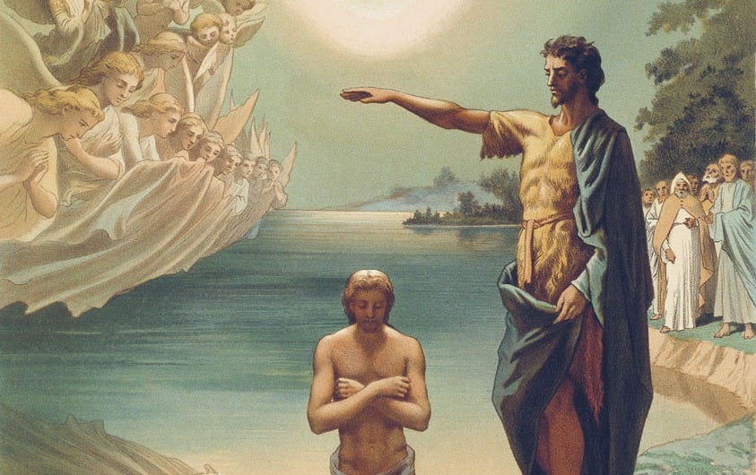 He was to take up the rite which St. John had adopted as the symbol of his mission and as a profession of penitence and faith, and make it into a Christian sacrament, and that sacrament the most fundamental and essential of all. And this was to be done at the moment when He Himself was to be solemnly and manifestly anointed for His own office as Redeemer and Prophet.