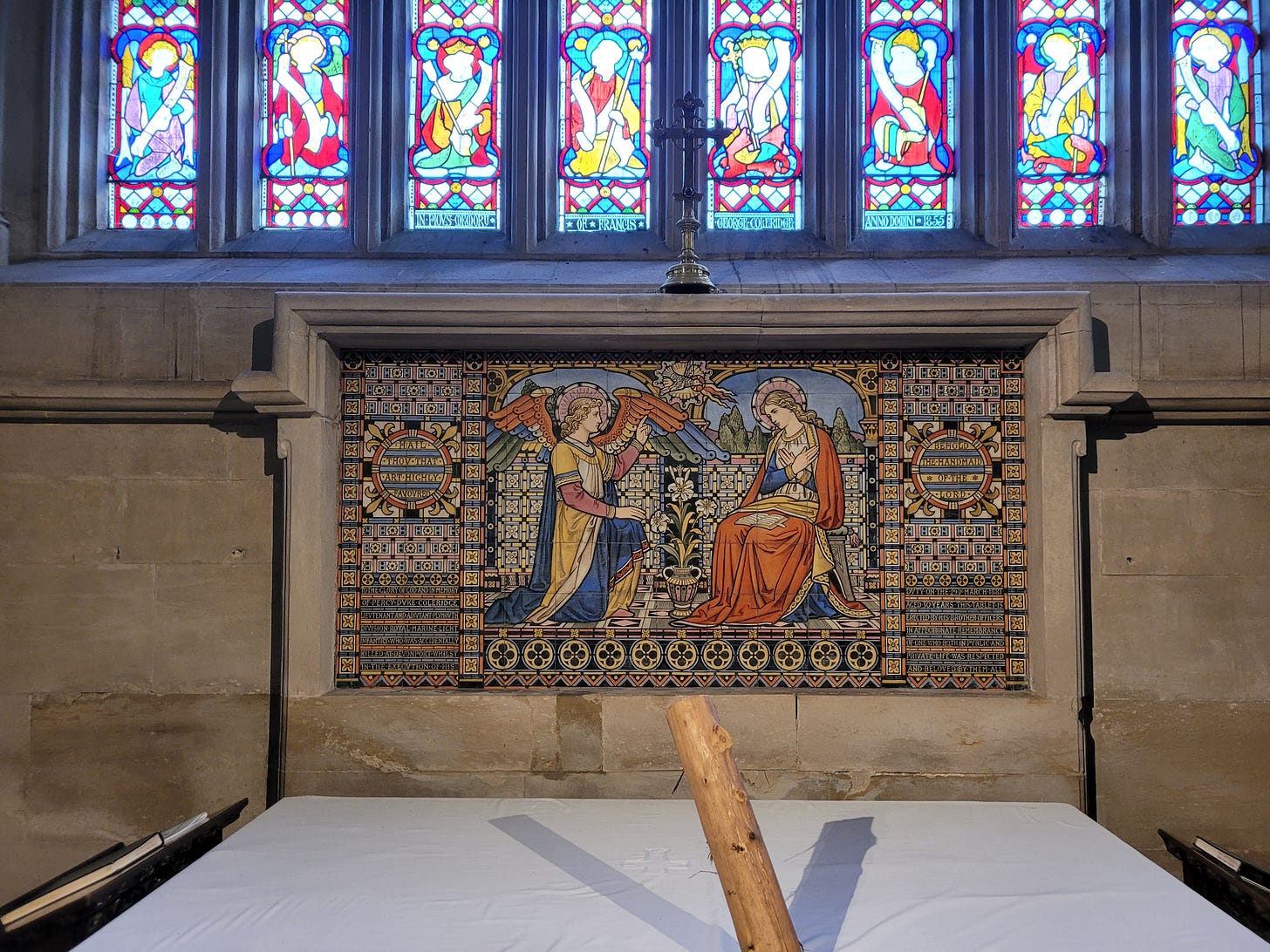 Taking our leave of Fr Coleridge and his family, we also visited the thirteenth century parish church (now in the hands of the Church of England), which was both sublime and, unfortunately, ridiculous. A picture of the exterior is above; the interior was magnificent: