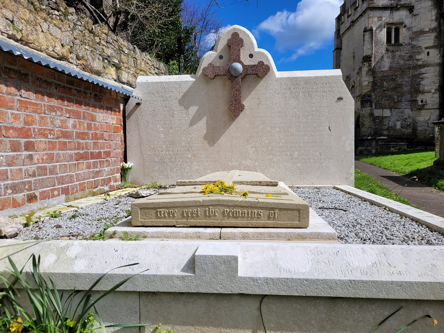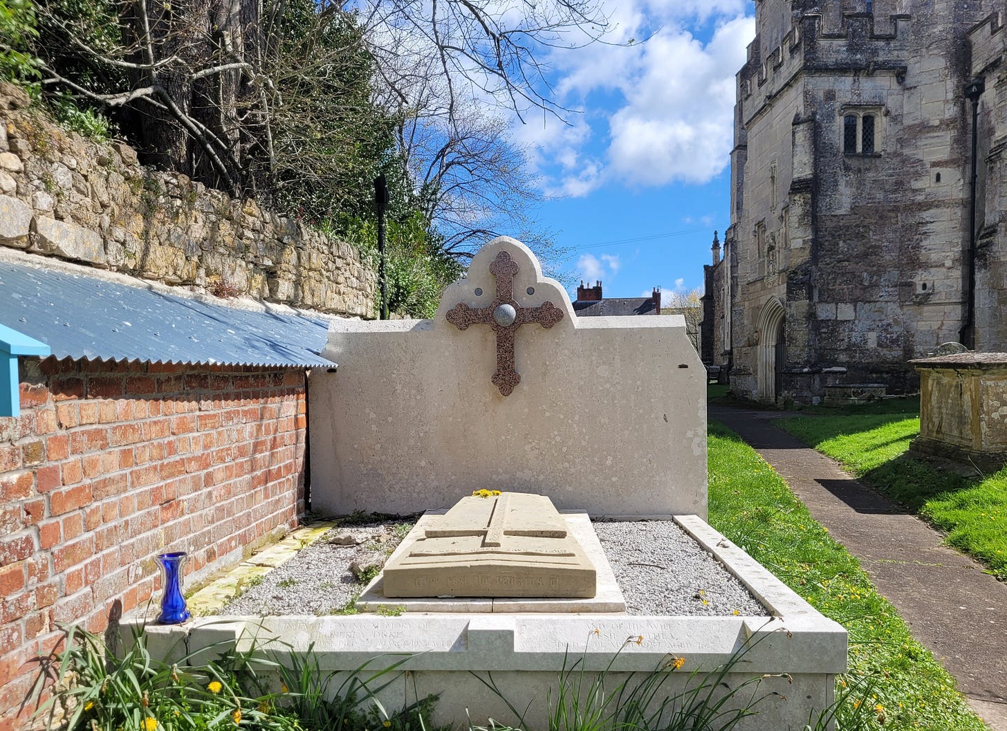 My children gathered a few dandelion flowers, and we said a decade of the Rosary for the repose of Fr Coleridge’s soul, and for any Holy Souls whose bodies lie in this churchyard.