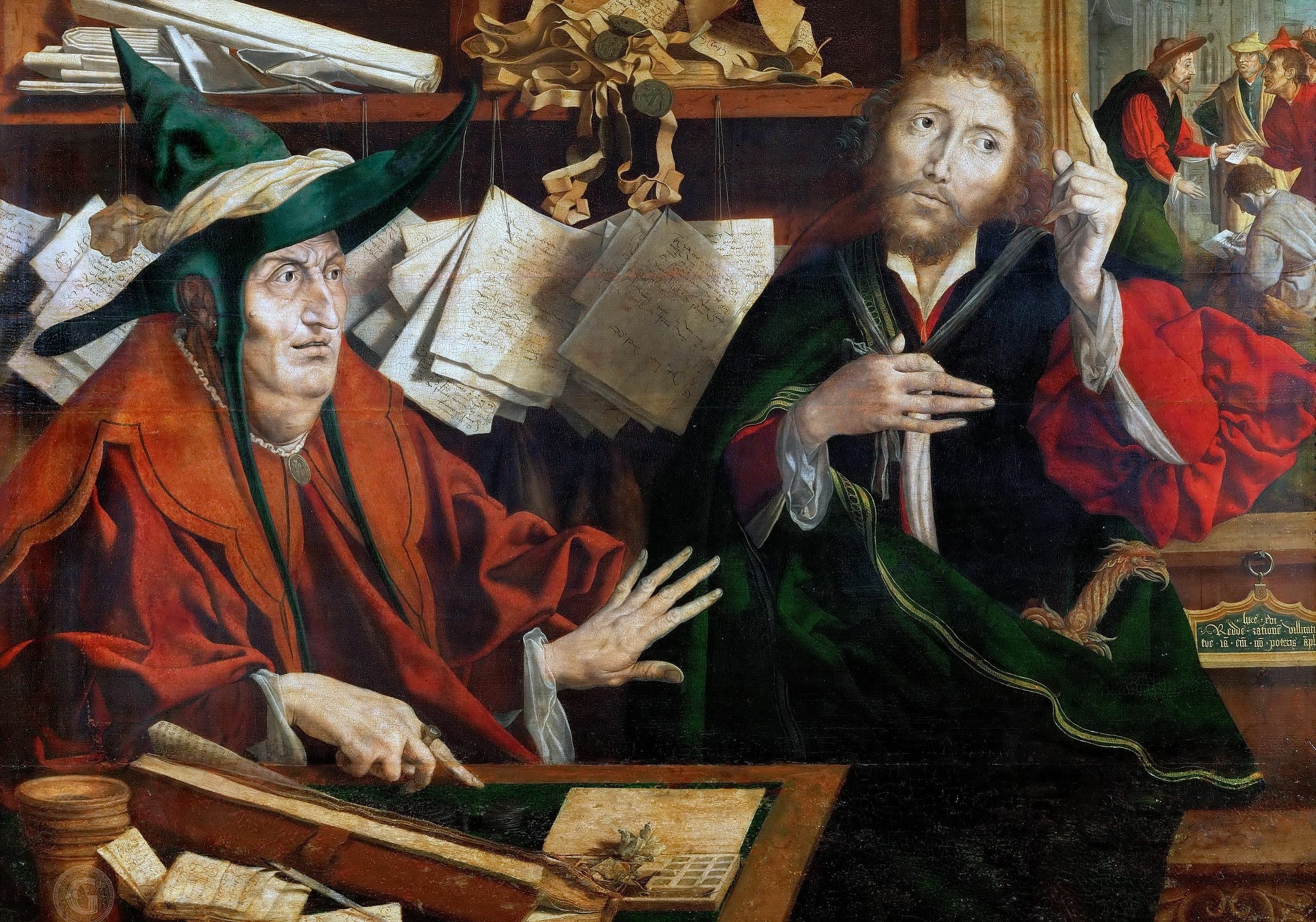 ‘Therefore calling together every one of his master’s debtors, he said to the first, How much dost thou owe to my lord? But he said, A hundred barrels of oil. And he said to him, Take thy bill, and sit down quickly, and write fifty. Then he said to another, And how much dost thou owe? Who said, A hundred quarters of wheat. He said to him, Take thy bill, and write eighty.